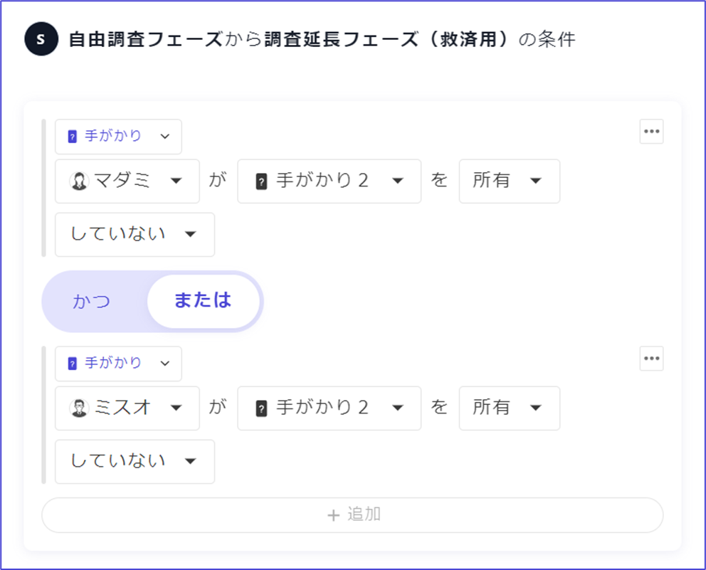 ⑤救済フェーズに行く条件として、「調査が終わっていないとき(手がかりを持っていない・数値カウント:誰かのトークンが1以上など)」を設定すれば完了です。