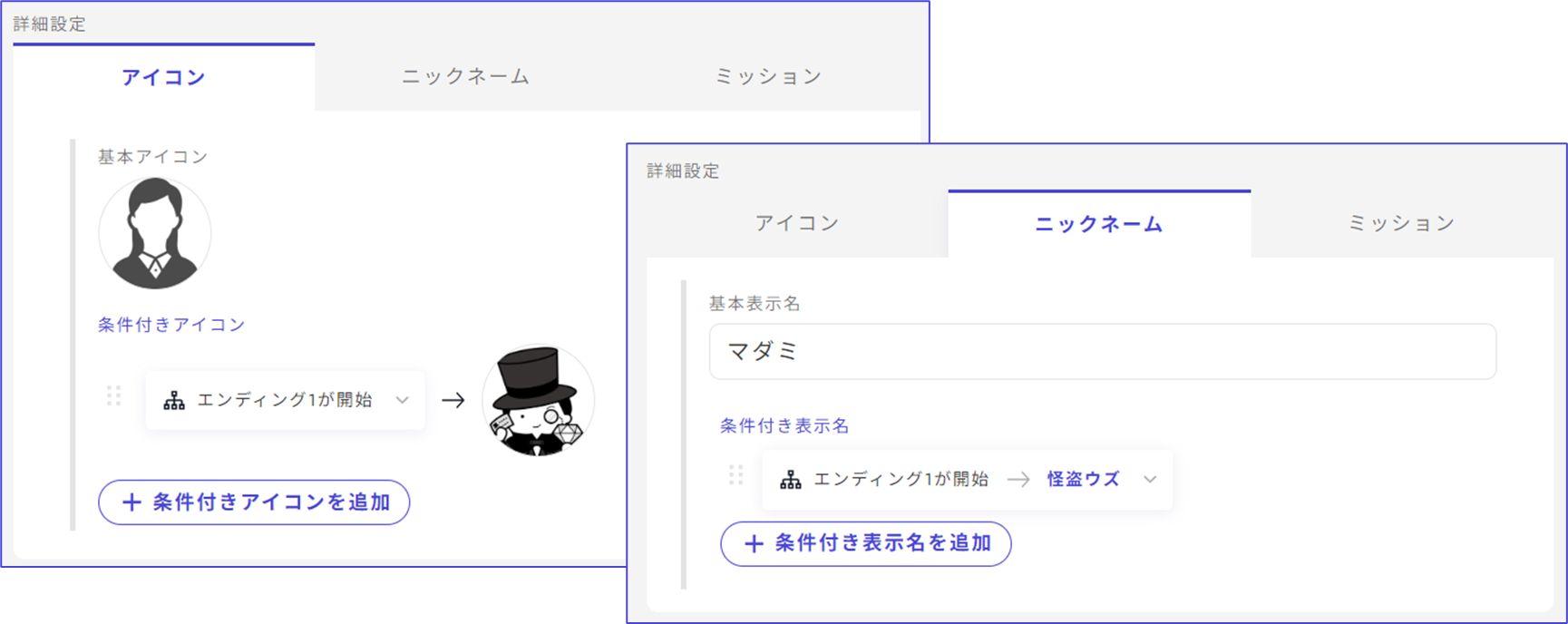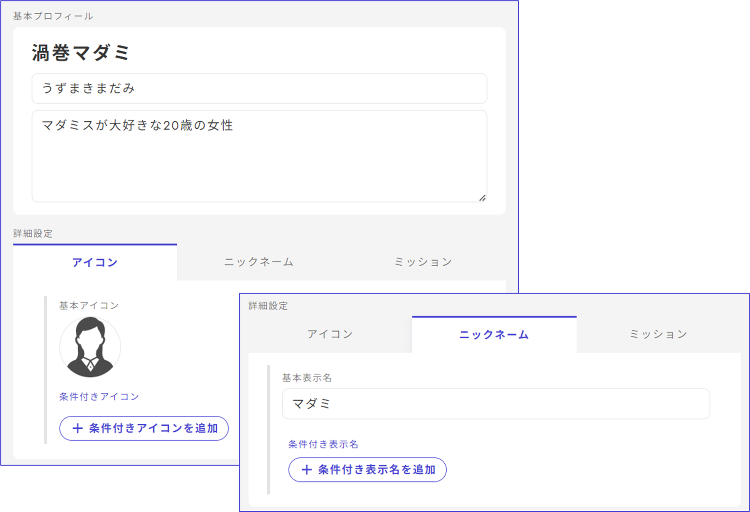 ## アイコン・ニックネームの条件設定