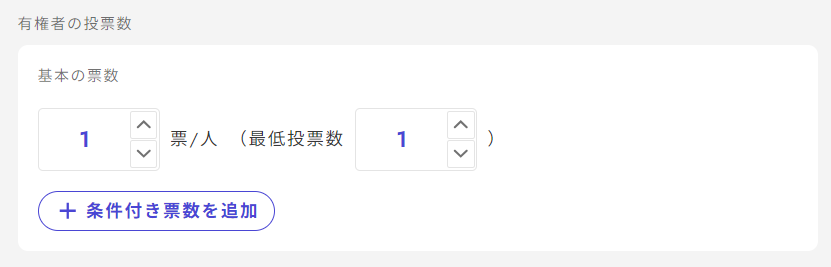 一人に複数票持たせる、条件を満たしたものだけに複数票持たせるといった設定もできます。