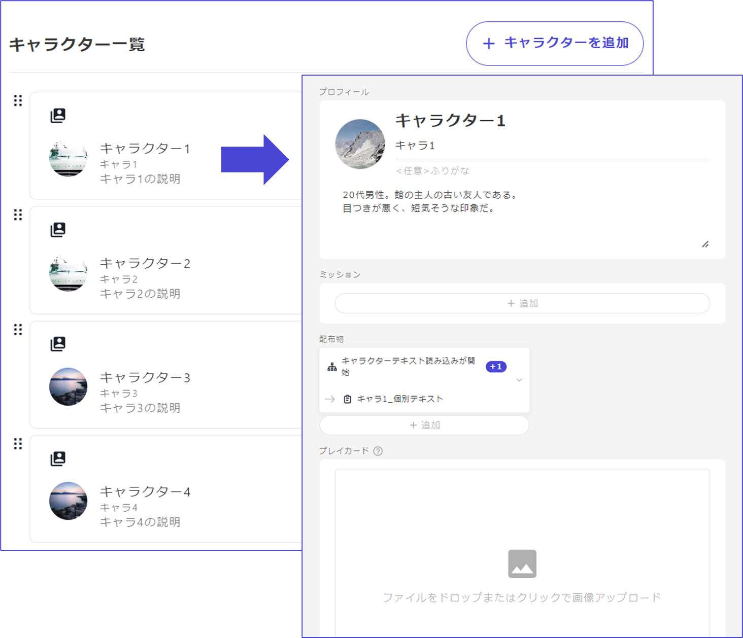 Playable characters are set based on the selected player count template. Input the names and descriptions for each.