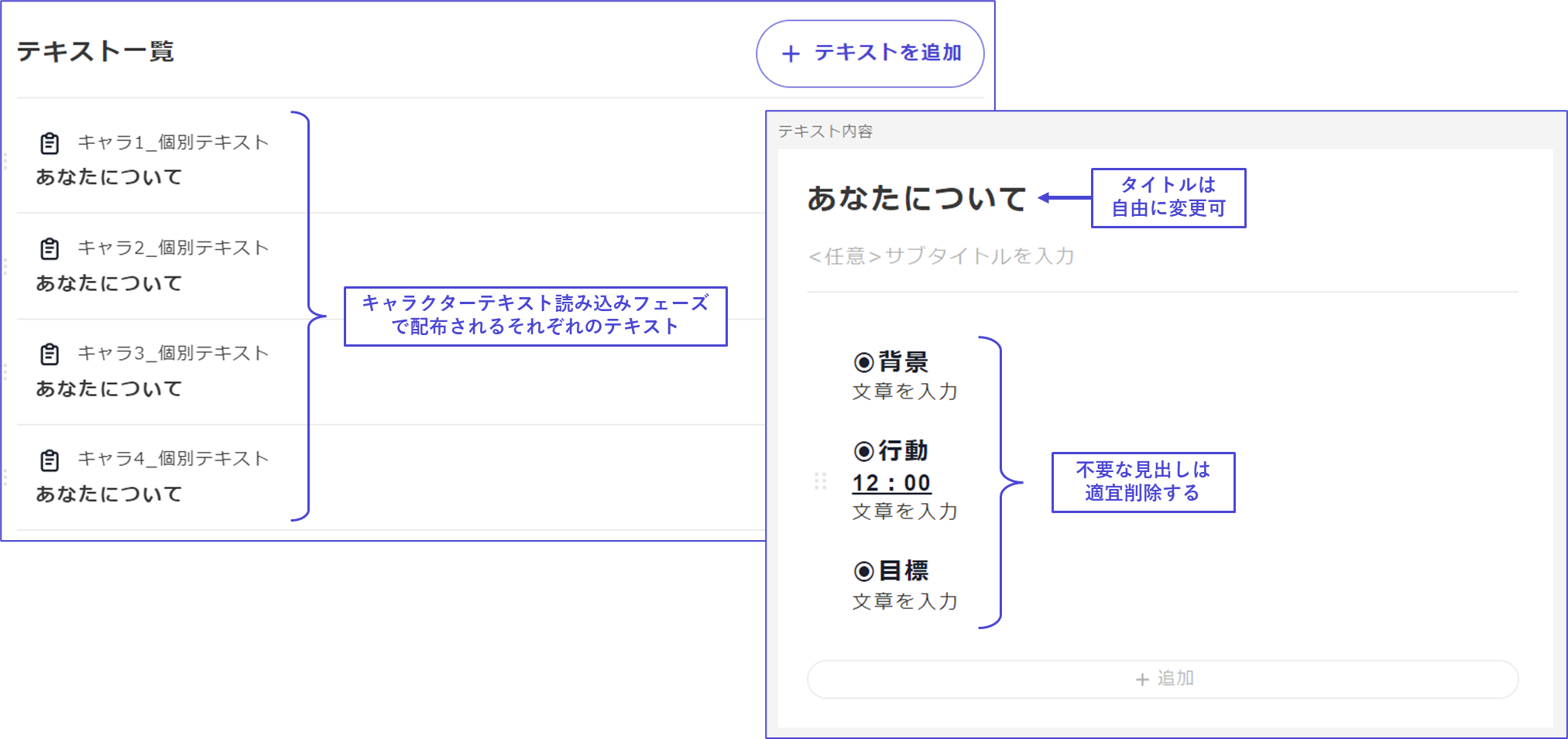### ④ Enter Character Texts