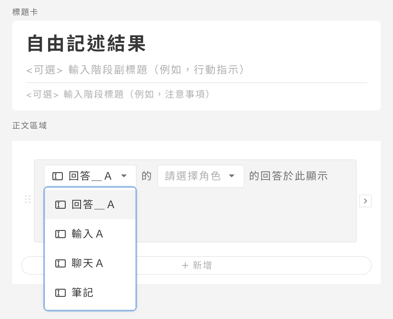 新增後，可以根據管理名選擇對應的自由記述項目。&#x20;