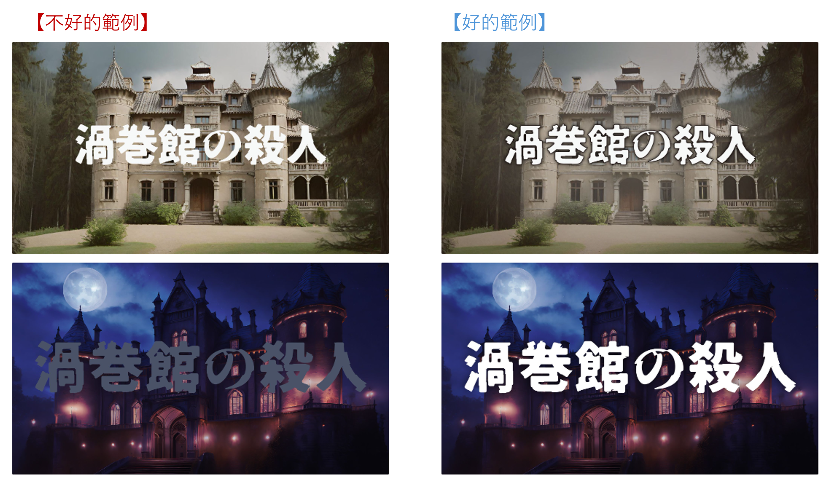 如果背景圖片和標題文字的顏色對比度較弱，可讀性將下降，請注意對比度來製作。