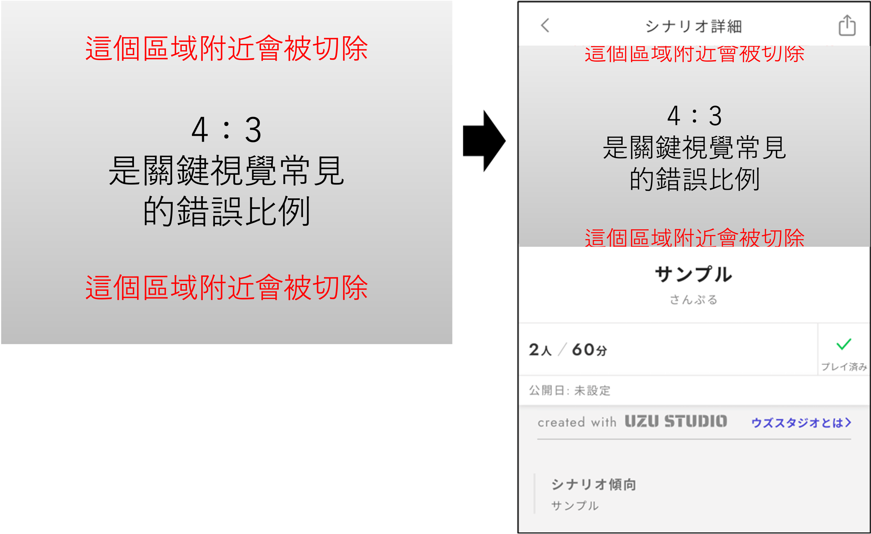 非16:9製作的關鍵視覺將無法在應用程式內正確顯示。