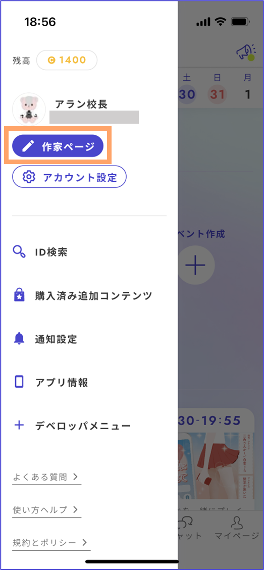 ※僅成為他人劇本的成員並不會顯示自己的作家頁面。若未顯示作家頁面按鈕，請從UZU STUDIO的主頁面創建至少一個劇本，即使是空白的劇本也無妨。